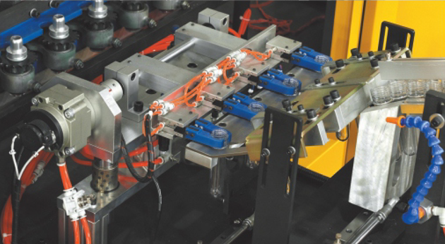 采用伺服電機(jī)驅(qū)動(dòng)環(huán)形鏈條; 采用伺服單通道上胚; 采用鋁合金制造的高壓吹氣組合閥,可有氣體回收裝置,減少能源消耗,保護(hù)環(huán)境; 采用PID恒定控制烤箱瓶胚加熱和風(fēng)機(jī)排風(fēng)。